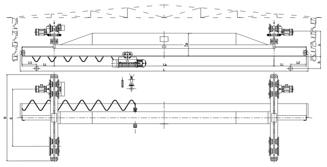 本產(chǎn)品為一般用途起重機(jī),多用于機(jī)械制造裝配、倉庫、山洞等場所。起重機(jī)主要由橋架(金屬結(jié)構(gòu))、電動葫蘆、運(yùn)行結(jié)構(gòu)、電氣設(shè)備等四部分組成。